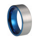 Blue and Silver Matte Finish Tungsten Wedding Band Ring for Men