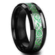 Black Celtic Dragon Tungsten Mens Wedding Band Ring with Green Carbon Fiber Inlay
