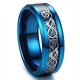 Blue Celtic Dragon Tungsten Mens Wedding Band Ring with Silver Carbon Fiber Inlay