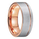 Rose Gold and Silver Offset Grooved Tungsten Wedding Band Ring for Men