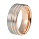 Rose Gold and Silver Brushed Double Grooved Tungsten Wedding Band Ring for Men