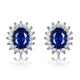 Oval Cut Blue Sapphire Sterling Silver Earrings, Diamond Simulant Earrings for Women