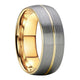 Yellow Gold Grooved Silver Finish Tungsten Wedding Band Ring for Men