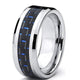 Black and Blue Carbon Fiber Silver Tungsten Mens Wedding Band Ring