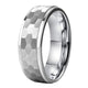 Silver Hammered Tungsten Wedding Band Ring for Men with Stepped Edges