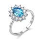 Blue Topaz Diamond Simulant Wedding Ring, 925 Sterling Silver CZ Engagement Ring for Women