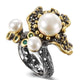 Blooming Flower Pearls Wedding Ring for Women, Green Tone Zirconia Black Gold Color Engagement Ring