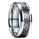 Silver Celtic Dragon Tungsten Mens Wedding Band Ring with Black Carbon Fiber Inlay